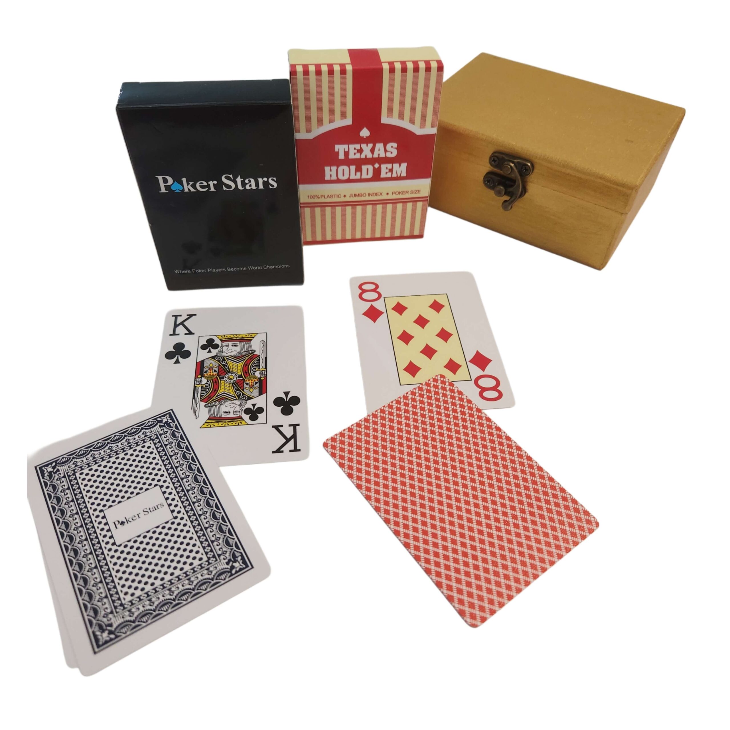 1 دست پاسور Texas holdem و1 دست پاسور Pokerstars و یک جعبه نگهدارنده کارت ها