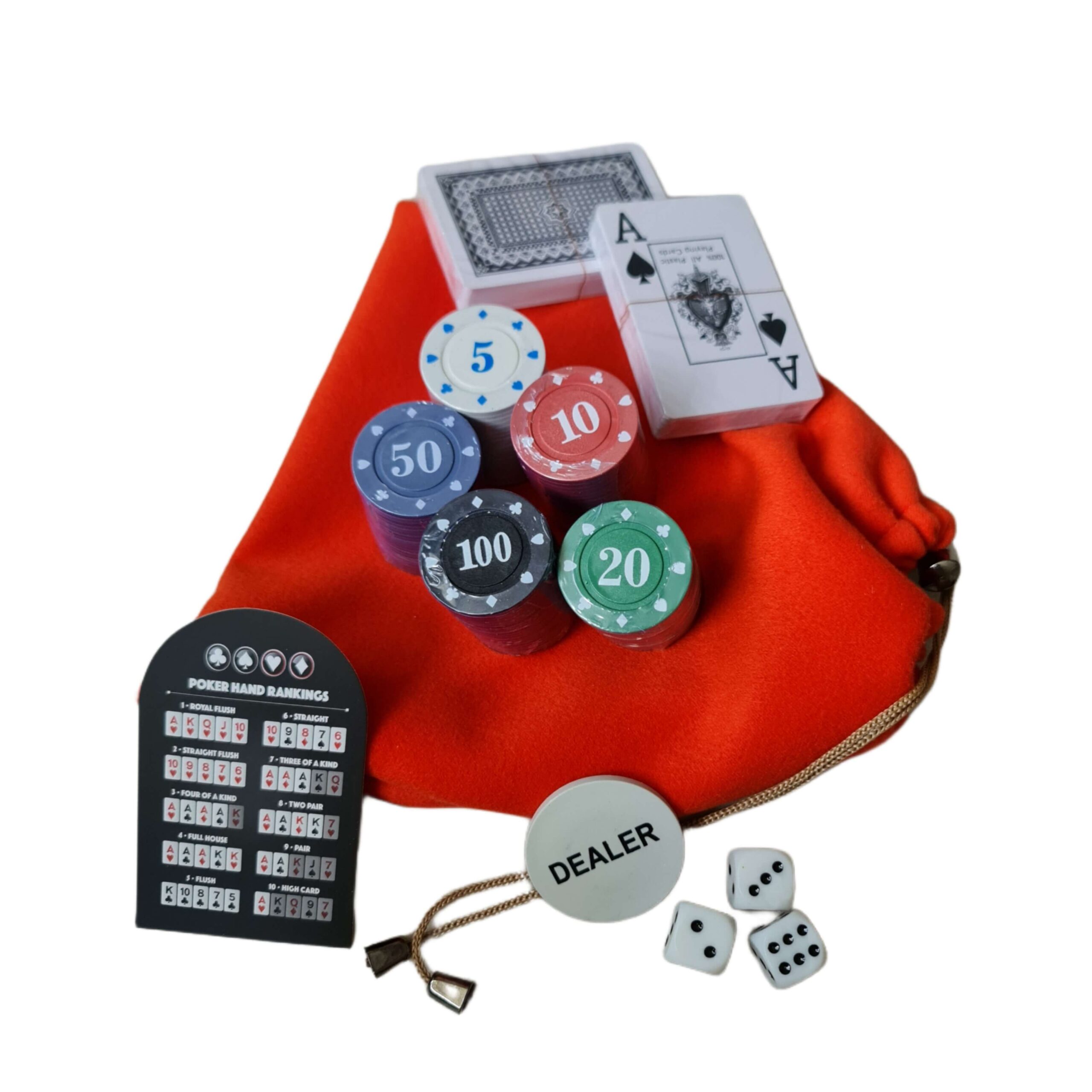 چیپ ست پلاستیکی 100 تایی، یک گزینه ساده و اقتصادی برای بازیهای خانگی و دورهمی هستند. این مدل وزن سبکتری دارد و برای بازیهای دوستانه که نیاز به تجهیزات حرفهای نیست، انتخاب کاملاً مناسبی محسوب میشود.