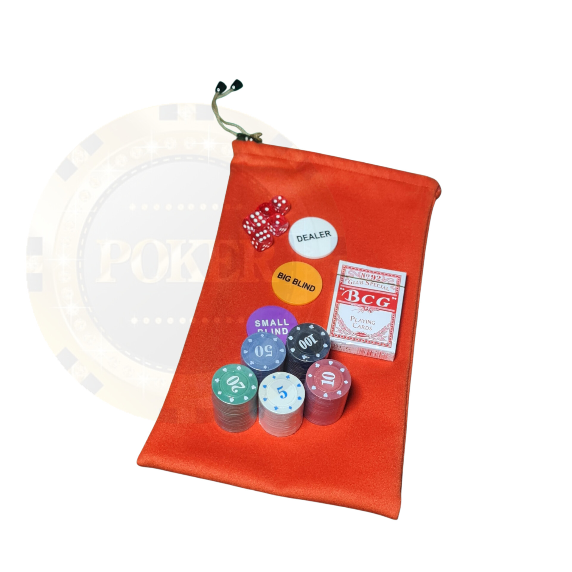5 عدد تاس و 1 دکمه دیلر